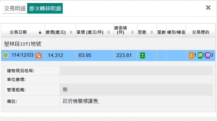 大園區菓林段1051地223.81坪建地-14312萬-63.95萬-11412